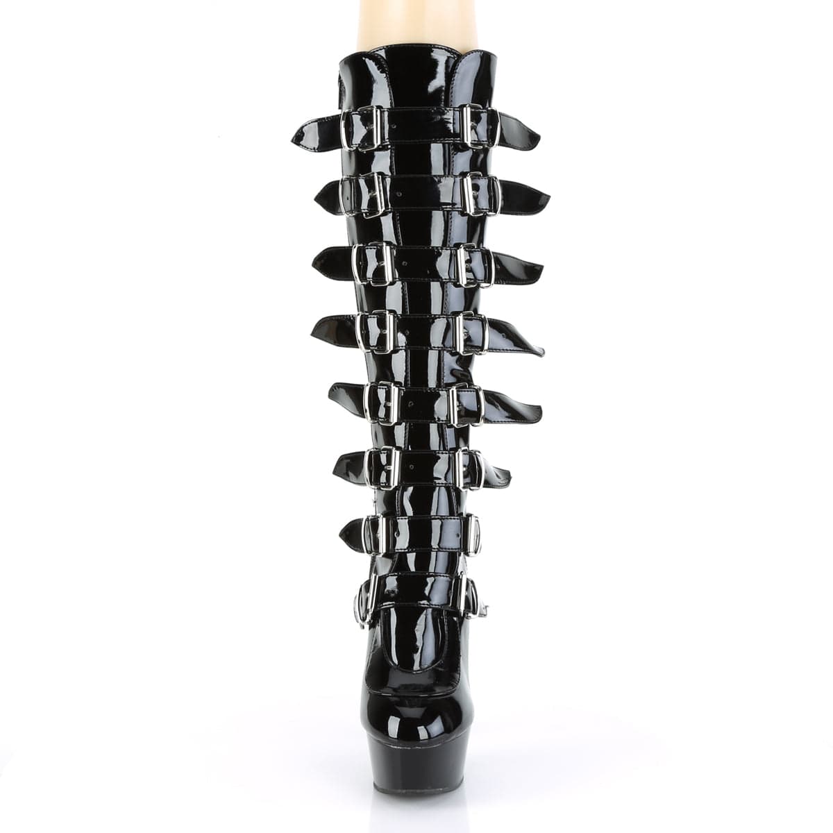 DELIGHT 2049 Black Patent/Black Platform Buckled Knee Boot, Side Zip