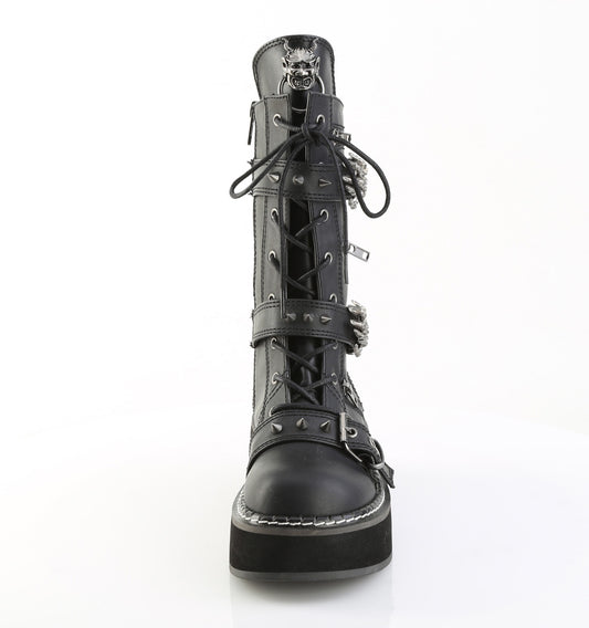 SAVE 4% NewEMILY-82 Black Vegan Leather Knee High Boots