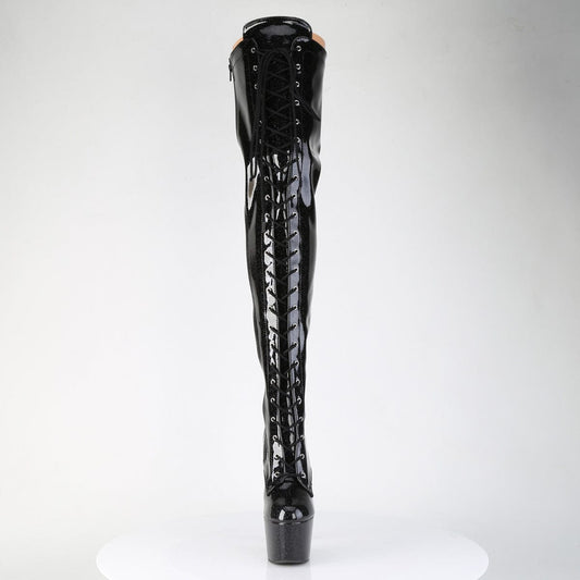 ADORE-3020GP Black Glitter Pat Thigh Boots