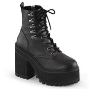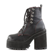 ASSAULT 100 Black Vegan Leather Platform D-Ring Lace-Up Ankle Boot, Side Zip