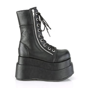 Additonal Description: 4 1/2" Platform. 4 1/2" (114mm) Tiered Platform Lace-Up Front Mid-Calf Boot Featuring Outer & Inner Metal Zip Closure
