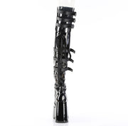 Additonal Description: 5" Chunky Heel, 3" Platform. 5" (127mm) Chunky Heel, 3" (75mm) Platform Back Ribbon Lace-Up Thigh-High Boot w/ Top Real Buckle Straps & Ornamental Harness Detail & Front Facing Belted Straps, Full Length Inner Side Metal Zip Closure