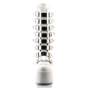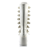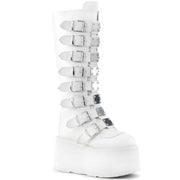 DAMNED 318 White Vegan Leather Platform Knee High Boot with 8 Buckle Straps, Back Metal Zip