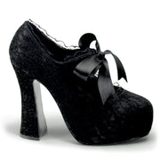 DEMON 11 Black Satin-Black Lace Concealed Platform Mary Jane Pump with Lace Overlay & Bow