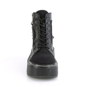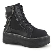EMILY 114 Black Canvas-Vegan Leather Platform Lace-Up Bootie, Outer Metal Zipper