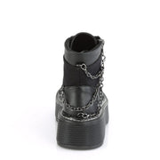 Additonal Description: 2" Platform Lace-Up Bootie. 2" (51mm) Platform Lace-Up Front Bootie with Padded Ankle Collar, Clip-On Back Chain Detail and Outer Metal Zip Closure