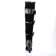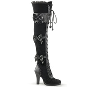 GLAM 300 Black Vegan Leather-Velvet Platform Goth Lolita Over-the-Knee Boot with Bows