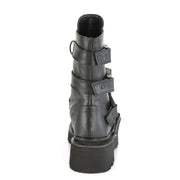 RENEGADE 55 Black Vegan Leather Tiered Platform Strappy Calf High Boot, Center Front Zip