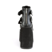 Additonal Description: 5 1/2" Platform. 5 1/2"(140mm) Wedge Platform Ankle Boot Featuring Triple Buckle Straps w/ Silver Chrome Plated Metal Plates at Center, Back Metal Zip Closure
