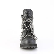 Additonal Description: 1 1/2" Platform. 1 1/2" (38mm) Platform Lace-Up Front Ankle Boot Featuring Outer Buckle Strap and Screw Studs, Spike Studs, Various O-Ring, D-Ring & Triangle Rings W/ Hanging Chain Details, Inside Metal Zip Closure