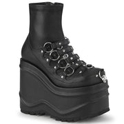 WAVE 110 Black Stretch Vegan Leather Wedge Platform Stretch Ankle Boot, Inside Zip