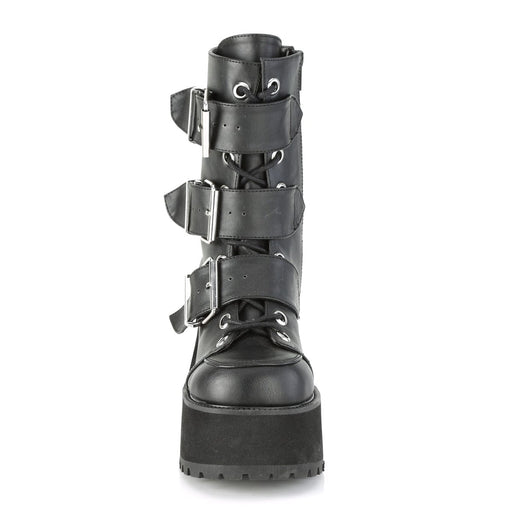 RANGER 308 Black Vegan Leather Platform Lace-Up Ankle Boot, Side ZipDetails: 3 3/4 Inch Heel, 2 1/4 Inch Platform Brand: Demonia.