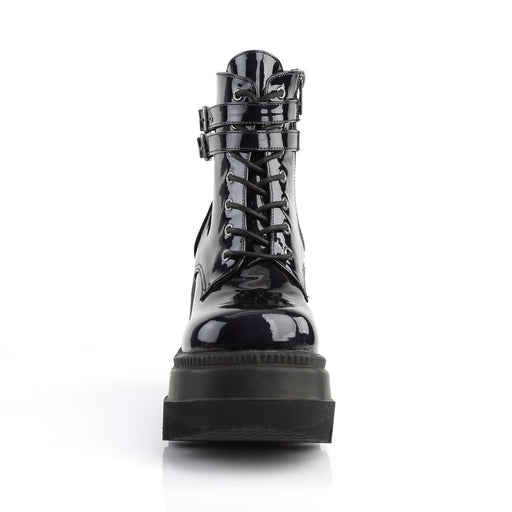 SHAKER 52 Black Hologram Wedge Platform Ankle Boot, Side ZipDetails: 4 1/2 Inch Stacked Wedge Platform Brand: Demonia.