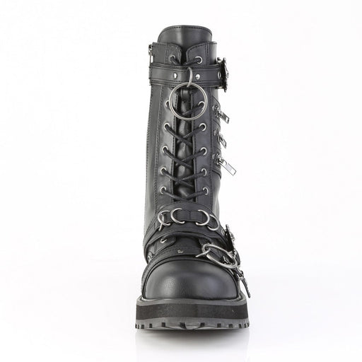 View full detailsCAMEL 65 Black Vegan Leather Platform Lace-Up Mid-Calf Boot, Back ZipDetails: 5 Inch Chunky Heel, 3 Inch Platform Brand: Demonia.