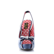 BETTIE 05 Navy Blue Patent Hidden Platform Peep Toe Slingback Sandal with Bow