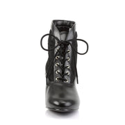 DAME 05 Black Pu-Lace Heel, Lace Victorian Ankle Boot, Pioneer