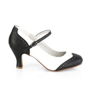 FLAPPER 25 Black-White Pu Kitten Heel Round Toe Spectator Mary Jane Pump