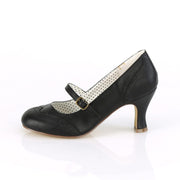 FLAPPER 32 Black Faux Leather Kitten Heel Round Toe Mary Jane Pump