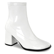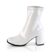 GOGO 150 White Stretch Patent Block Heel Ankle Gogo Boot