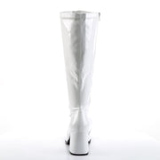 GOGO 300X White Stretch Patent Block Heel Stretch Pat Wide Width Gogo Boot, Plus Size