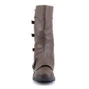 Additonal Description: 1 1/2" Flat Heel. 1 1/2" (3.8cm) Flat Heel Men's Buckled Strap Knee High Cuffed Boot w/ Detachable Shaft & Inner Zip Closure