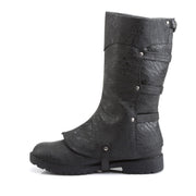 GOTHAM 105 Black Distressed Pu Flat Heel Men's Buckled Strap Knee High Cuffed Boot