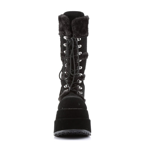 BEAR 202 Black Vegan Suede Platform Goth Punk Stacked Vegan Suede Calf BootDetails: 4 1/2 Inch Platform Brand: Demonia.