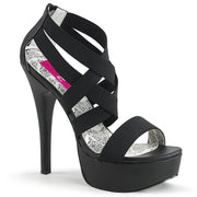 Additonal Description: 5 3/4" Heel, 1 3/4" Platform. 5 3/4" (14.6cm) Heel, 1 3/4" (4.5cm) Platform Cross Close Back Peep Toe Sandal, Back Zip