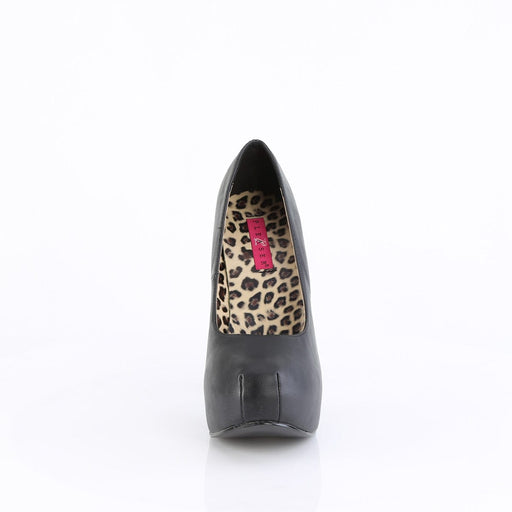 TEEZE 06W Black Faux Leather Platform Pump with Concealed PlatformDetails: 5 3/4 Inch Heel, 1 3/4 Inch Platform Brand: Pleaser Pink Label.