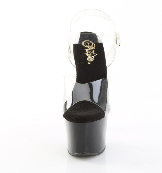 SKY-308CRS Platform Shoes Clear/Black-Lavender Rhinestone