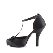 Additonal Description: 4 1/2" Heel, 3/4" Platform. 4 1/2" (11.4cm) Heel, 1" (2.5cm) Hidden Platform T-Strap D'orsay Pump with Bow