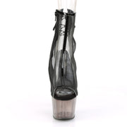 Additonal Description: 7" Heel, 2 3/4" Tinted Platform. 7" (178mm) Heel, 2 3/4" (70mm) Tinted Platform Open Toe/Heel Lace-Up Back Mesh Ankle Boot, Inner Side Zip Closure