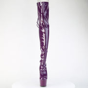 7 Inch Heel, 2 3/4 Inch Platform Lace-Up Back Stretch Thigh Boot, Side Zip