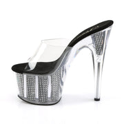 Additonal Description: 7" Heel, 2 3/4" Platform. 7" (17.8cm) Stiletto Heel, 2 3/4" (7cm) Platform Slide Featuring Chrome Plated, Simulated Rhinestone Filled Bottom