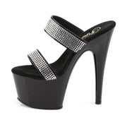 ADORE 702 2 Black/Black Platform Slide, Two-Band with Rhinestones