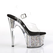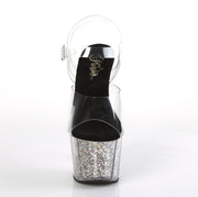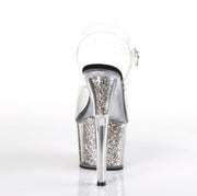 ADORE 708CG Clear/Silver Confetti Glitter Platform Ankle Strap Sandal with Glitter Inserts