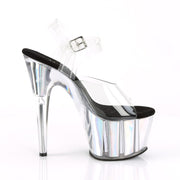 ADORE 708HGI Clear/Silver Hologram Inserts Platform Ankle Strap Sandal with Hologram Inserts