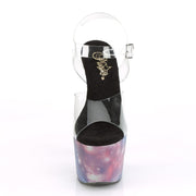 Additonal Description: 7" Heel, 2 3/4" Platform. 7" (178mm) Heel, 2 3/4" (70mm) Platform Ankle Strap Sandal Featuring Reflective Galaxy Effect Wrapped Platform Bottom