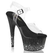 Additonal Description: 7" Heel, 2 3/4" PF. 7" (178mm) Heel, 2 3/4" (70mm) Platform Ankle Strap Sandal Featuring Sprinkle Rhinestone Design on the Lower Half of the Platform Bottom & Heel