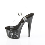 Additonal Description: 7" Heel, 2 3/4" PF. 7" (178mm) Heel, 2 3/4" (70mm) Platform Ankle Strap Sandal Featuring Rhinestone "TIP ME" on the Outer Side of the Platform Bottom