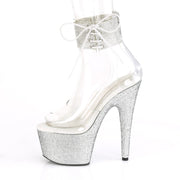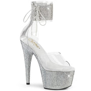Additonal Description: 7" Heel, 2 3/4" Platform. 7" (178mm) Heel, 2 3/4" (70mm) Platform Close Back Ankle Cuff Sandal w/Side Lacing and Rhinestone Embellished Ankle Cuff & Platform Bottom, Back Zip Closure