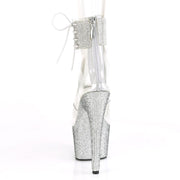BEJEWELED 724RS Clear/Silver Rhinestones Platform Ankle Cuff Sandal with Rhinestones, Back Zip