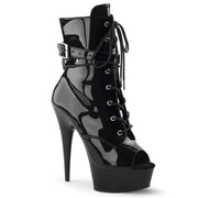 Additonal Description: 6" Heel, 1 3/4" Platform. 6" (15.2cm) Stiletto Heel, 1 3/4" (4.5cm) Platform Peep Toe Front Lace-Up Ankle Boot with Wrap Around Buckled Strap, Inner Side Zip Closure