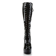 Additonal Description: 5" Heel, 1 1/2" Platform. 5" (12.7cm) Stack Heel, 1 1/2" (3.8cm) Platform Knee Boot with Lace Front Detail, Full Inner Side Zip Closure