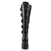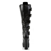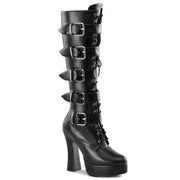 Additonal Description: 5" Heel, 1 1/2" Platform. 5" (12.7cm) Stack Heel, 1 1/2" (3.8cm) Platform Knee Boot with 5 Buckle Detail, Full Inner Side Zip Closure