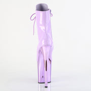 Additonal Description: 8" Heel, 4" Platform. 8" (200mm) Heel, 4" (100mm) Platform Lace-Up Front Ankle Boot Featuring Chrome Plated Platform Bottom, Inner Side Zip Closure