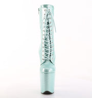 Additonal Description: 8" Heel, 4" Platform. 8" (200mm) Heel, 4" (100mm) Platform Lace-Up Front Ankle Boot Featuring Back Pull Loop, Inner Side Zip Closure