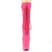 FLAMINGO 1050FS Hot Pink Faux Suede/Hot Pink Faux Suede Platform Lace-Up Front Mid Calf Boot, Side Zip