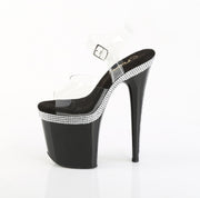 8 Inch Heel, 4 Inch Platform Ankle Strap Sandal with Rhinestone Lines