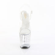 Additonal Description: 8" Heel, 4" PF. 8" (100mm) Heel, 4" (200mm) Platform Ankle Strap Sandal Featuring Rhinestone Teardrop Design on Outer Side of the Platform bottom & Heel